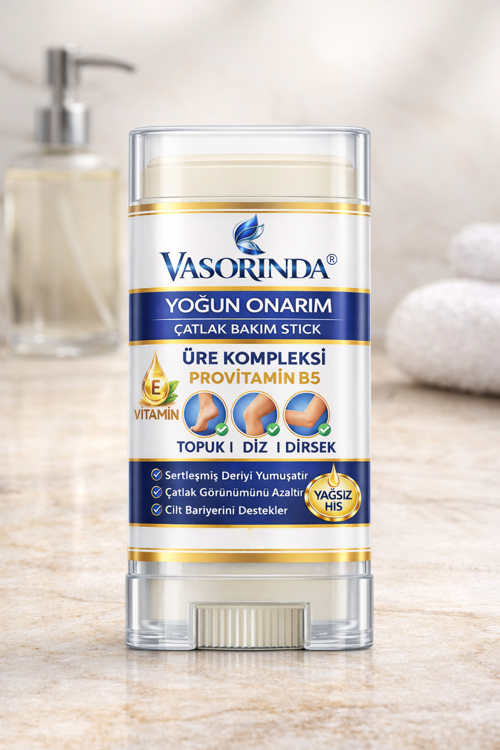 Modern Yaşamın Zorluklarına Karşı Cildinizin Direnci Gün boyu maruz kalınan sert hava koşulları, çevresel faktörler ve fiziksel aktiviteler; özellikle vücudun uç noktalarında elastikiyet kaybına, dirençli kurumalara ve derin çatlaklara yol açar. Topuk, diz ve dirsek gibi bakımı en zor bölgelerde sıradan nemlendiricilerin yüzeysel etkisi artık yeterli değil. Vasorinda, suyun derinlemesine nemlendirme gücünü zengin yağ fazının oklüzif koruma kalkanıyla tek bir stick formunda buluşturarak cilt bakımında yeni bir standart belirliyor.